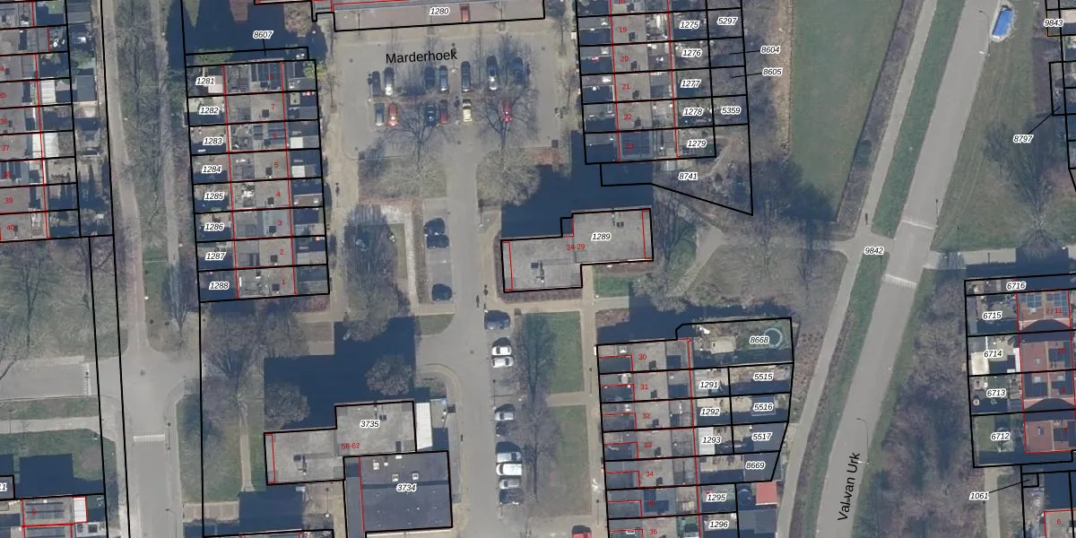 Marderhoek 26 is gelegen op kadastraal perceel LLS00K1289. Deze kadastrale aanduiding is uniek en wordt gebruikt door het Kadaster om eigendomsrechten en andere zakelijke rechten vast te leggen. Het perceel maakt onderdeel uit van de kadastrale gemeente Lelystad.