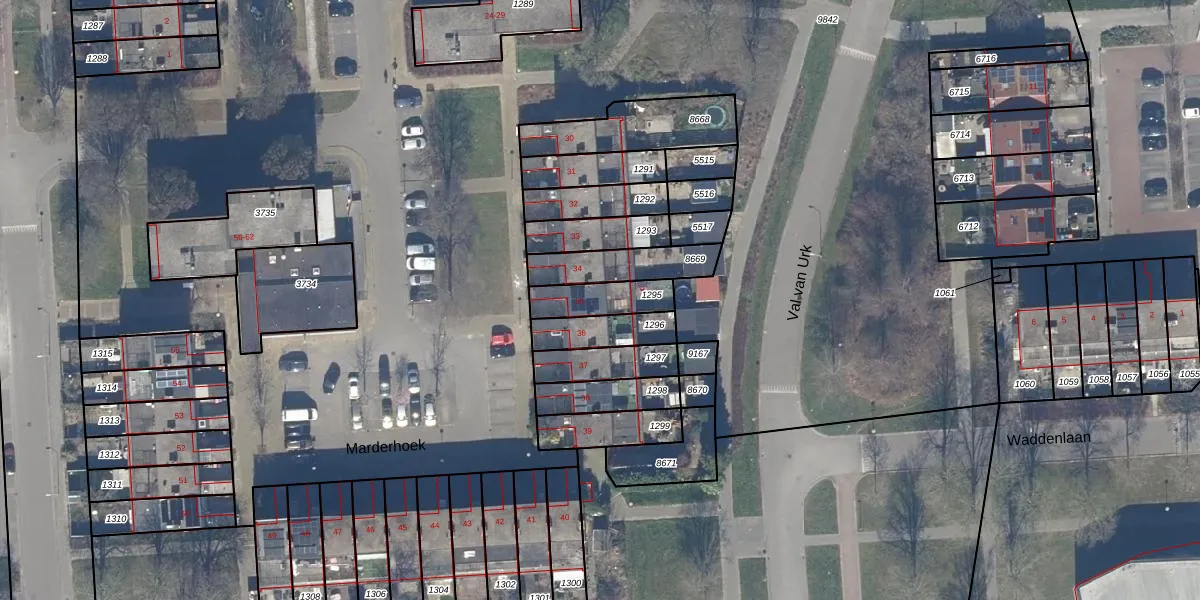 Gebruik de zoekbalk of klik op een perceel voor informatie over de adressen binnen dit perceel.