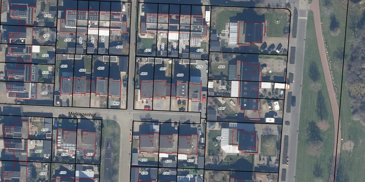 Het perceel waarop Markiezenhof 13 staat heeft een oppervlakte van 284 m². Dit is een middelgroot perceel. De perceeloppervlakte wordt geregistreerd door het Kadaster. Gedetailleerde informatie over de maten van dit perceel kunt u vinden in het rapport Kadastrale kaart met maatvoering van Markiezenhof 13.
