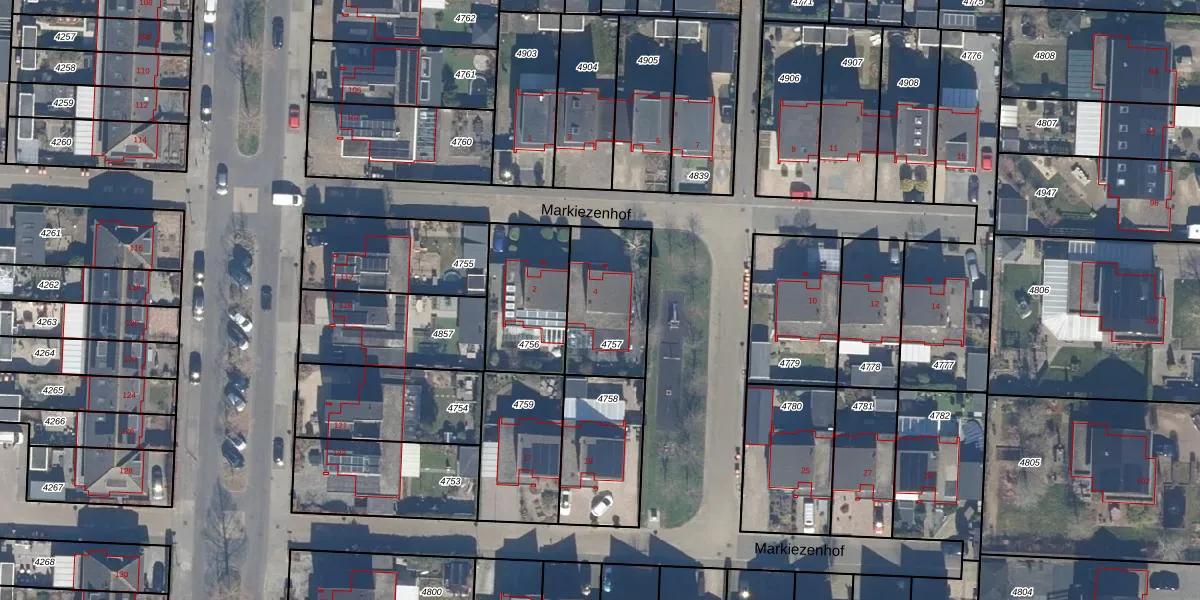 Markiezenhof 4 is gelegen op kadastraal perceel LLS00P4757. Deze kadastrale aanduiding is uniek en wordt gebruikt door het Kadaster om eigendomsrechten en andere zakelijke rechten vast te leggen. Het perceel maakt onderdeel uit van de kadastrale gemeente Lelystad.