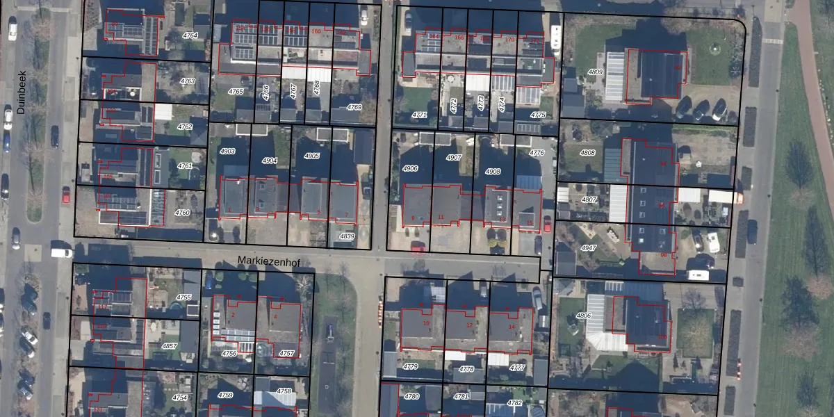 Gebruik de zoekbalk of klik op een perceel voor informatie over de adressen binnen dit perceel.