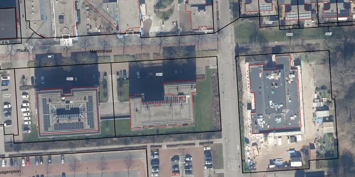 Het perceel waarop Marktstraat 108 staat heeft een oppervlakte van 2522 m². Dit is een zeer groot perceel. De perceeloppervlakte wordt geregistreerd door het Kadaster. Gedetailleerde informatie over de maten van dit perceel kunt u vinden in het rapport Kadastrale kaart met maatvoering van Marktstraat 108.