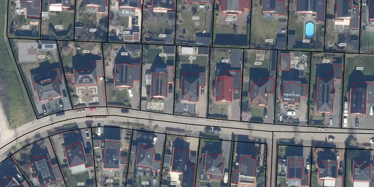 Het perceel waarop Marquette 22 staat heeft een oppervlakte van 684 m². Dit is een groot perceel. De perceeloppervlakte wordt geregistreerd door het Kadaster. Gedetailleerde informatie over de maten van dit perceel kunt u vinden in het rapport Kadastrale kaart met maatvoering van Marquette 22.