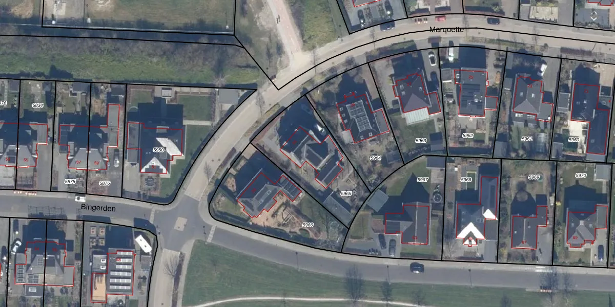 Het perceel waarop Marquette 31 staat heeft een oppervlakte van 751 m². Dit is een groot perceel. De perceeloppervlakte wordt geregistreerd door het Kadaster. Gedetailleerde informatie over de maten van dit perceel kunt u vinden in het rapport Kadastrale kaart met maatvoering van Marquette 31.