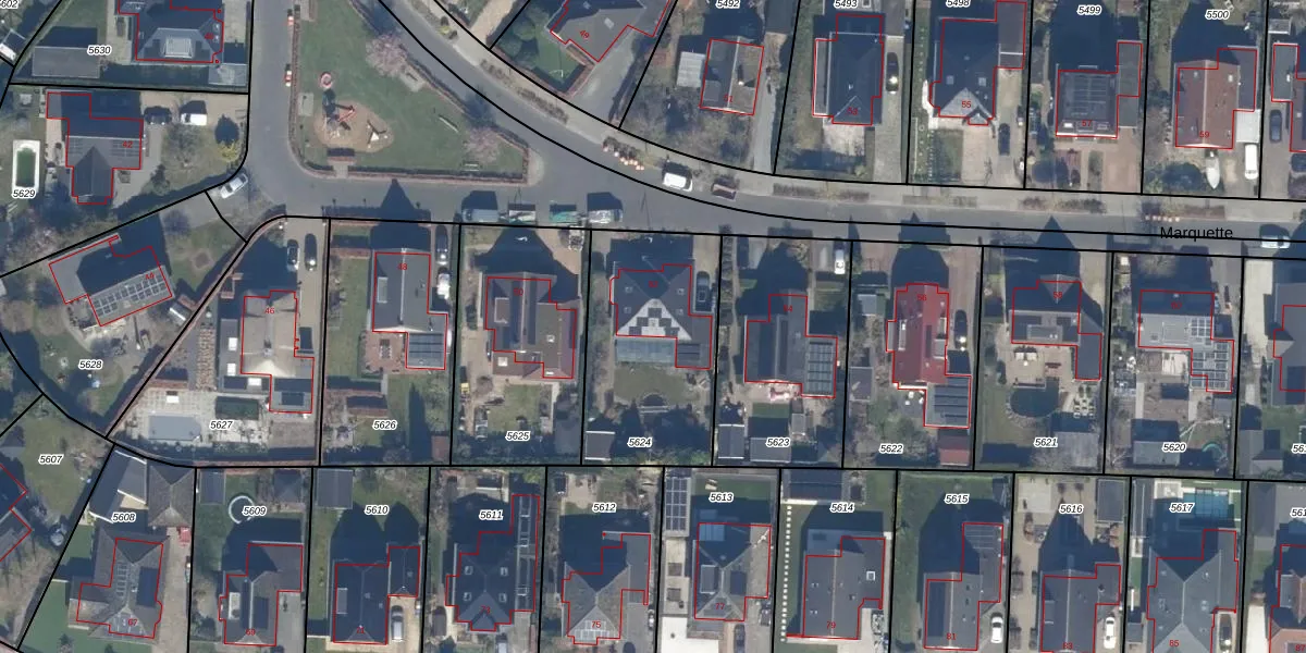 Het perceel waarop Marquette 52 staat heeft een oppervlakte van 716 m². Dit is een groot perceel. De perceeloppervlakte wordt geregistreerd door het Kadaster. Gedetailleerde informatie over de maten van dit perceel kunt u vinden in het rapport Kadastrale kaart met maatvoering van Marquette 52.