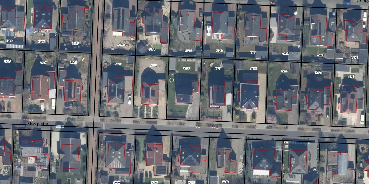 Het perceel waarop Marquette 67 staat heeft een oppervlakte van 612 m². Dit is een groot perceel. De perceeloppervlakte wordt geregistreerd door het Kadaster. Gedetailleerde informatie over de maten van dit perceel kunt u vinden in het rapport Kadastrale kaart met maatvoering van Marquette 67.