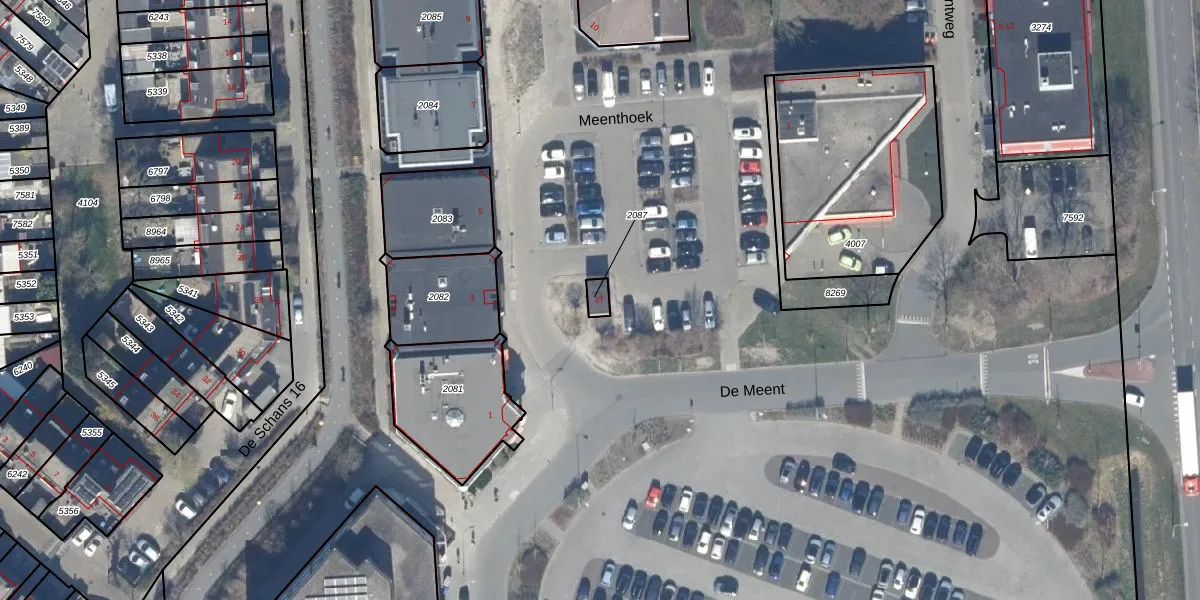 Gebruik de zoekbalk of klik op een perceel voor informatie over de adressen binnen dit perceel.