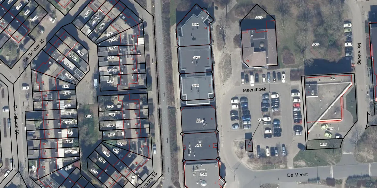 Meenthoek 7-7 is gelegen op kadastraal perceel LLS00M2084. Deze kadastrale aanduiding is uniek en wordt gebruikt door het Kadaster om eigendomsrechten en andere zakelijke rechten vast te leggen. Het perceel maakt onderdeel uit van de kadastrale gemeente Lelystad.