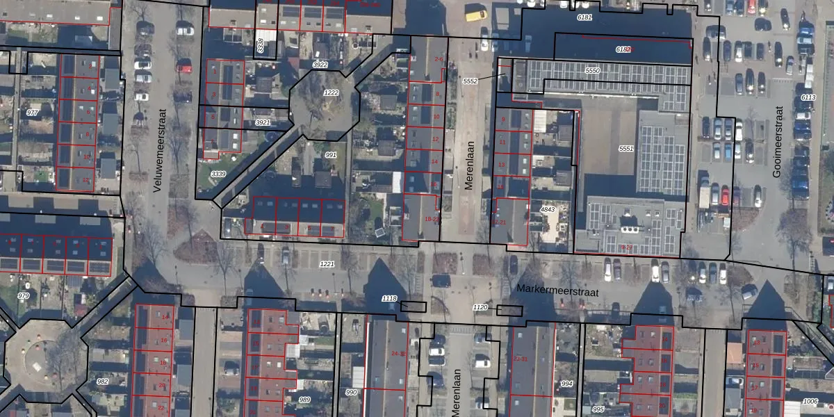 Merenlaan 20 is gelegen op kadastraal perceel LLS00P991. Deze kadastrale aanduiding is uniek en wordt gebruikt door het Kadaster om eigendomsrechten en andere zakelijke rechten vast te leggen. Het perceel maakt onderdeel uit van de kadastrale gemeente Lelystad.