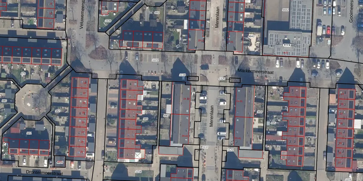 Merenlaan 24 is gelegen op kadastraal perceel LLS00P990. Deze kadastrale aanduiding is uniek en wordt gebruikt door het Kadaster om eigendomsrechten en andere zakelijke rechten vast te leggen. Het perceel maakt onderdeel uit van de kadastrale gemeente Lelystad.