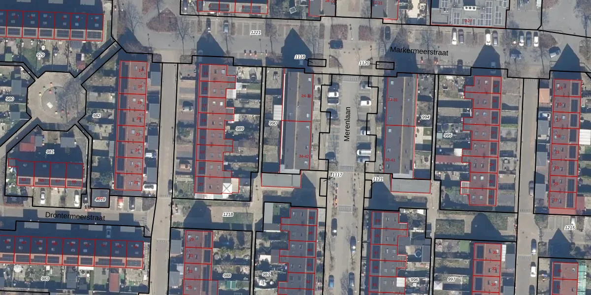 Merenlaan 40 is gelegen op kadastraal perceel LLS00P990. Deze kadastrale aanduiding is uniek en wordt gebruikt door het Kadaster om eigendomsrechten en andere zakelijke rechten vast te leggen. Het perceel maakt onderdeel uit van de kadastrale gemeente Lelystad.