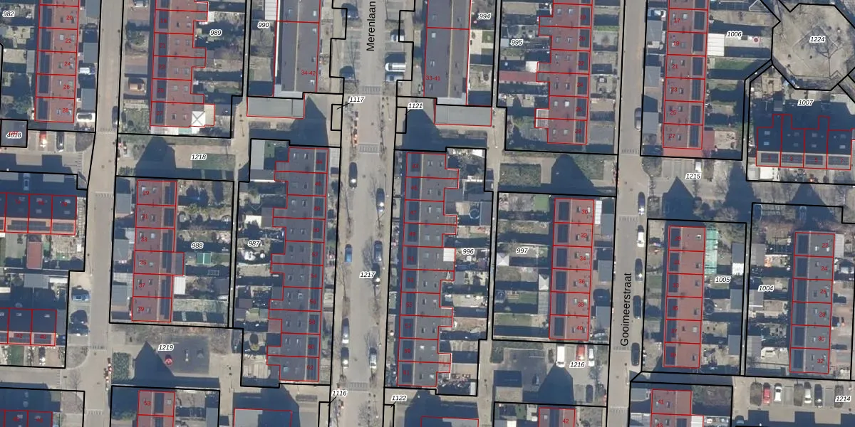 Het perceel waarop Merenlaan 47 staat heeft een oppervlakte van 1287 m². Dit is een zeer groot perceel. De perceeloppervlakte wordt geregistreerd door het Kadaster. Gedetailleerde informatie over de maten van dit perceel kunt u vinden in het rapport Kadastrale kaart met maatvoering van Merenlaan 47.