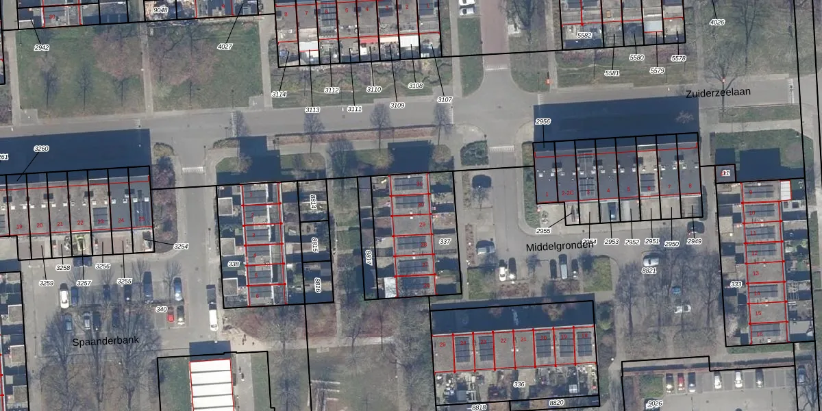 Het perceel waarop Middelgronden 30 staat heeft een oppervlakte van 592 m². Dit is een groot perceel. De perceeloppervlakte wordt geregistreerd door het Kadaster. Gedetailleerde informatie over de maten van dit perceel kunt u vinden in het rapport Kadastrale kaart met maatvoering van Middelgronden 30.