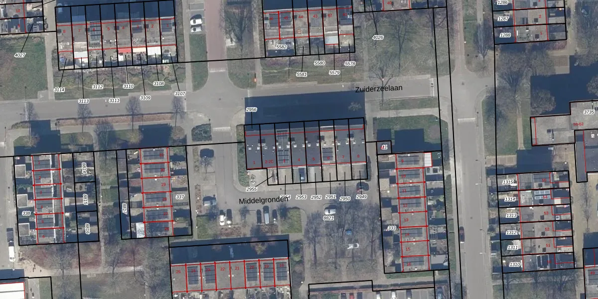 Middelgronden 4 is gelegen op kadastraal perceel LLS00K2953. Deze kadastrale aanduiding is uniek en wordt gebruikt door het Kadaster om eigendomsrechten en andere zakelijke rechten vast te leggen. Het perceel maakt onderdeel uit van de kadastrale gemeente Lelystad.