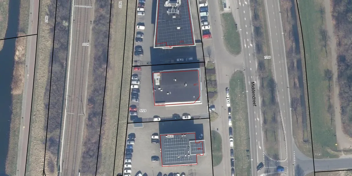 Middendreef 277 is gelegen op kadastraal perceel LLS00O5723. Deze kadastrale aanduiding is uniek en wordt gebruikt door het Kadaster om eigendomsrechten en andere zakelijke rechten vast te leggen. Het perceel maakt onderdeel uit van de kadastrale gemeente Lelystad.