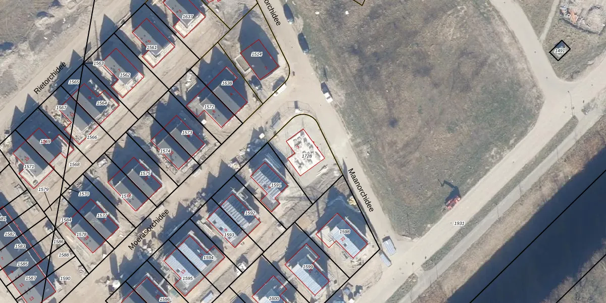 Gebruik de zoekbalk of klik op een perceel voor informatie over de adressen binnen dit perceel.