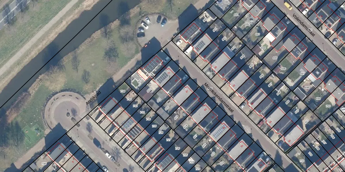 Gebruik de zoekbalk of klik op een perceel voor informatie over de adressen binnen dit perceel.