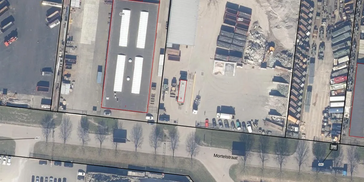 Het perceel waarop Mortelstraat 9 staat heeft een oppervlakte van 6941 m². Dit is een zeer groot perceel. De perceeloppervlakte wordt geregistreerd door het Kadaster. Gedetailleerde informatie over de maten van dit perceel kunt u vinden in het rapport Kadastrale kaart met maatvoering van Mortelstraat 9.