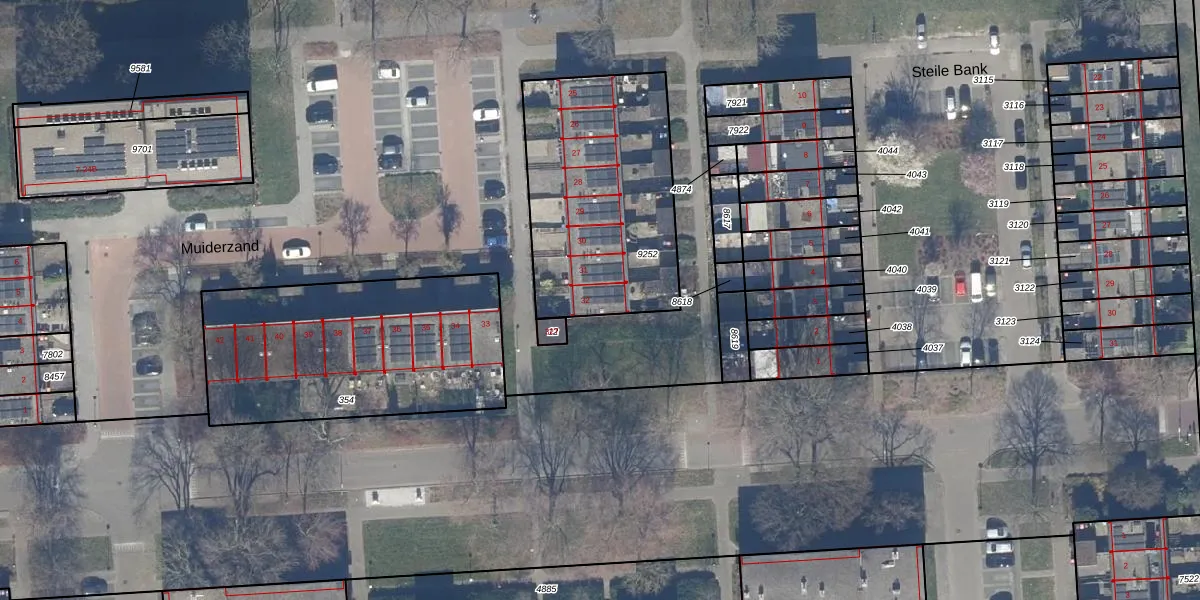 Het perceel waarop Muiderzand 32 staat heeft een oppervlakte van 955 m². Dit is een groot perceel. De perceeloppervlakte wordt geregistreerd door het Kadaster. Gedetailleerde informatie over de maten van dit perceel kunt u vinden in het rapport Kadastrale kaart met maatvoering van Muiderzand 32.