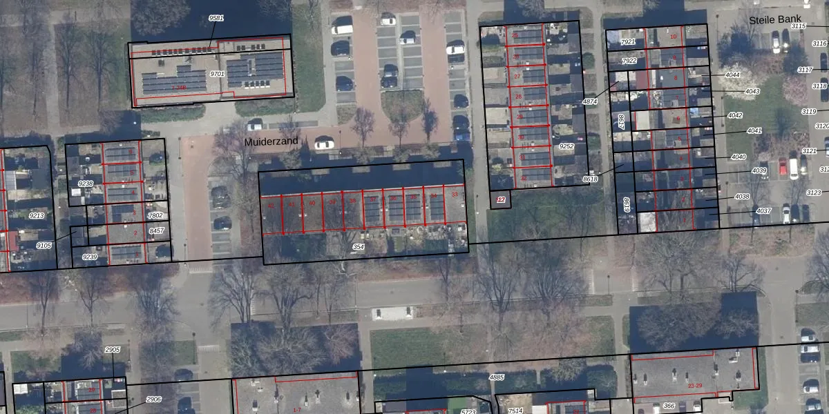 Het perceel waarop Muiderzand 35 staat heeft een oppervlakte van 1112 m². Dit is een zeer groot perceel. De perceeloppervlakte wordt geregistreerd door het Kadaster. Gedetailleerde informatie over de maten van dit perceel kunt u vinden in het rapport Kadastrale kaart met maatvoering van Muiderzand 35.