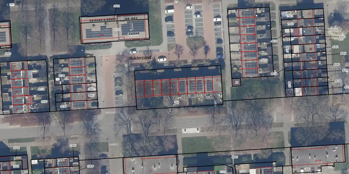 Het perceel waarop Muiderzand 38 staat heeft een oppervlakte van 1112 m². Dit is een zeer groot perceel. De perceeloppervlakte wordt geregistreerd door het Kadaster. Gedetailleerde informatie over de maten van dit perceel kunt u vinden in het rapport Kadastrale kaart met maatvoering van Muiderzand 38.