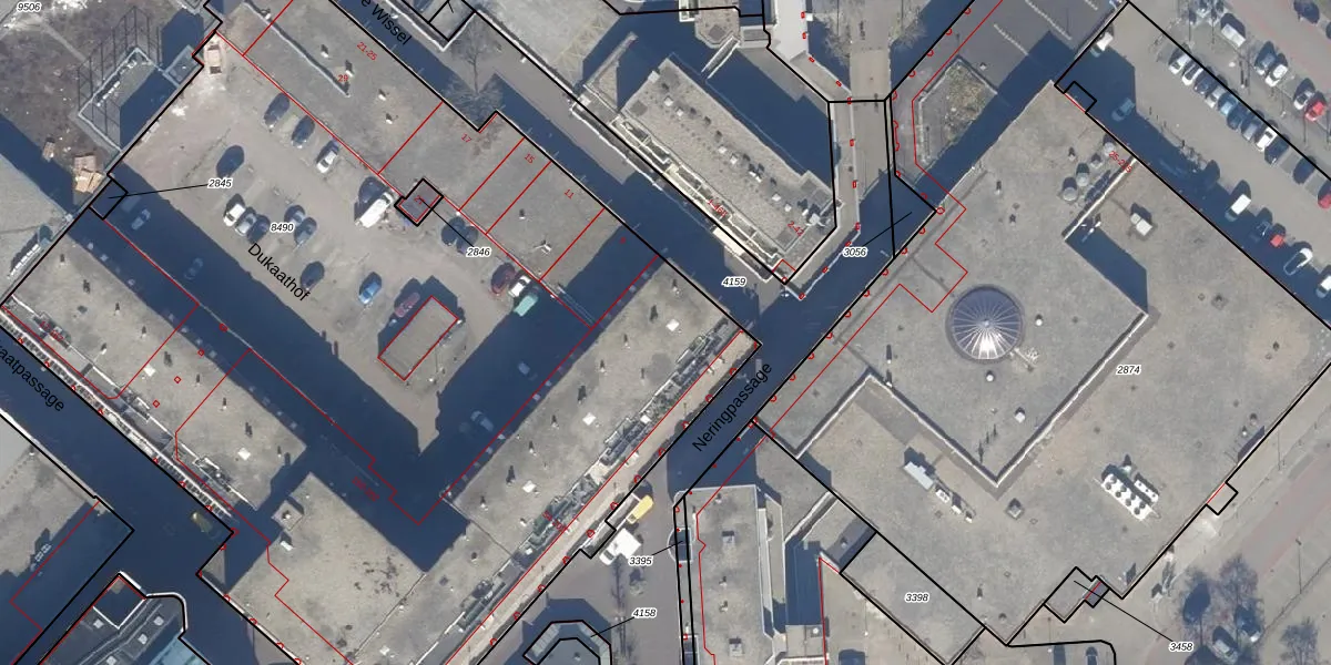 Het perceel waarop Neringpassage 54 staat heeft een oppervlakte van 6900 m². Dit is een zeer groot perceel. De perceeloppervlakte wordt geregistreerd door het Kadaster. Gedetailleerde informatie over de maten van dit perceel kunt u vinden in het rapport Kadastrale kaart met maatvoering van Neringpassage 54.