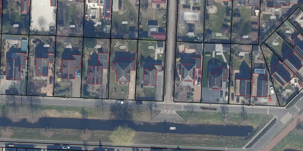 Het perceel waarop Nijenrode 21 staat heeft een oppervlakte van 745 m². Dit is een groot perceel. De perceeloppervlakte wordt geregistreerd door het Kadaster. Gedetailleerde informatie over de maten van dit perceel kunt u vinden in het rapport Kadastrale kaart met maatvoering van Nijenrode 21.