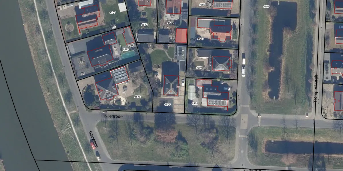 Het perceel waarop Nijenrode 3 staat heeft een oppervlakte van 925 m². Dit is een groot perceel. De perceeloppervlakte wordt geregistreerd door het Kadaster. Gedetailleerde informatie over de maten van dit perceel kunt u vinden in het rapport Kadastrale kaart met maatvoering van Nijenrode 3.