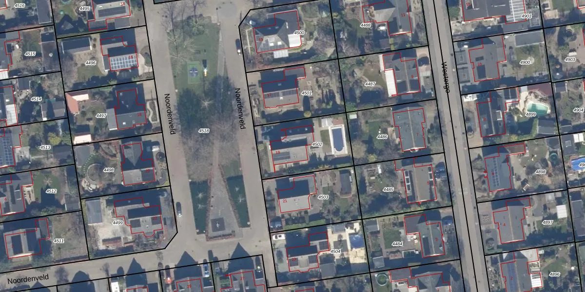 Het perceel waarop Noordenveld 19 staat heeft een oppervlakte van 590 m². Dit is een groot perceel. De perceeloppervlakte wordt geregistreerd door het Kadaster. Gedetailleerde informatie over de maten van dit perceel kunt u vinden in het rapport Kadastrale kaart met maatvoering van Noordenveld 19.