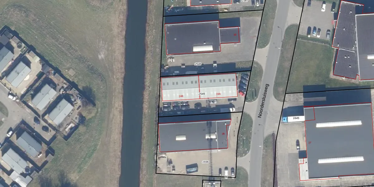 Noordersluisweg 24-B is gelegen op kadastraal perceel LLS00N2549. Deze kadastrale aanduiding is uniek en wordt gebruikt door het Kadaster om eigendomsrechten en andere zakelijke rechten vast te leggen. Het perceel maakt onderdeel uit van de kadastrale gemeente Lelystad.