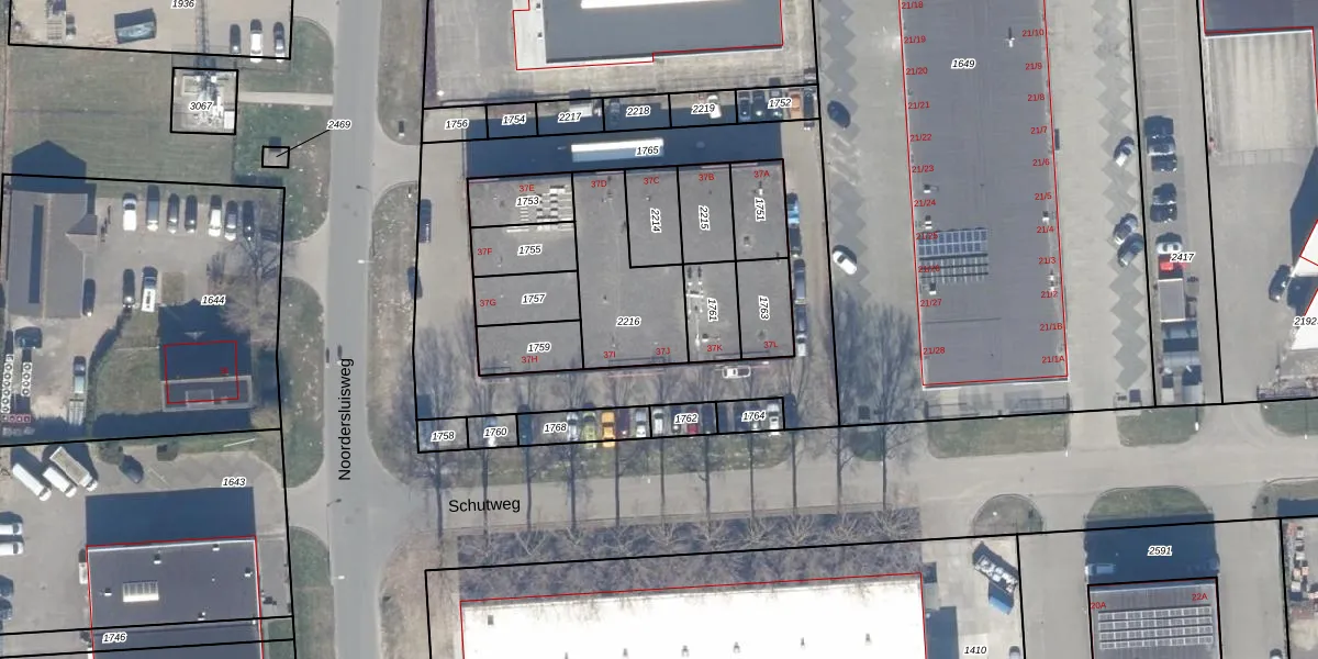 Noordersluisweg 37-J is gelegen op kadastraal perceel LLS00N2216. Deze kadastrale aanduiding is uniek en wordt gebruikt door het Kadaster om eigendomsrechten en andere zakelijke rechten vast te leggen. Het perceel maakt onderdeel uit van de kadastrale gemeente Lelystad.