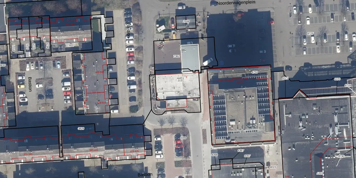 Gebruik de zoekbalk of klik op een perceel voor informatie over de adressen binnen dit perceel.