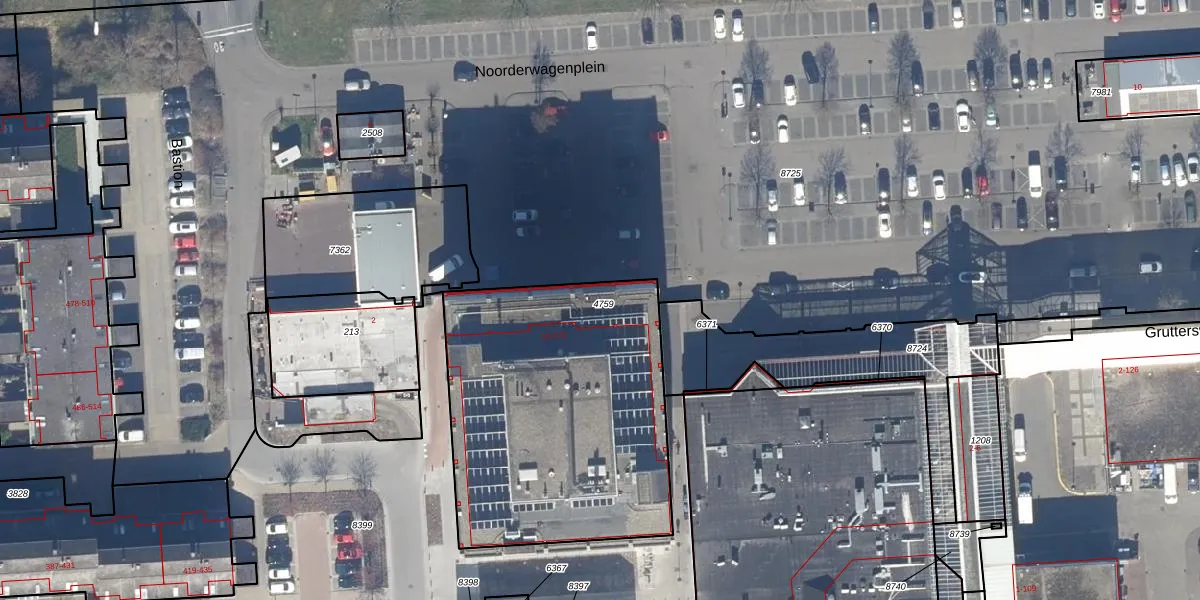 Het perceel waarop Noorderwagenplein 82 staat heeft een oppervlakte van 1533 m². Dit is een zeer groot perceel. De perceeloppervlakte wordt geregistreerd door het Kadaster. Gedetailleerde informatie over de maten van dit perceel kunt u vinden in het rapport Kadastrale kaart met maatvoering van Noorderwagenplein 82.