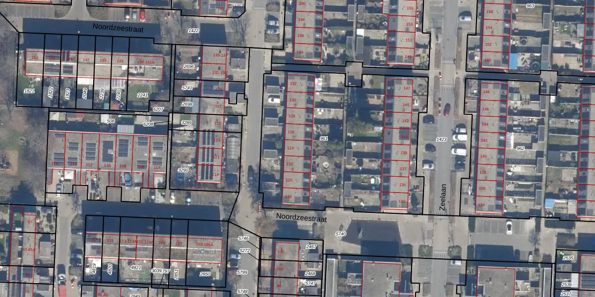 Het perceel waarop Noordzeestraat 124 staat heeft een oppervlakte van 2458 m². Dit is een zeer groot perceel. De perceeloppervlakte wordt geregistreerd door het Kadaster. Gedetailleerde informatie over de maten van dit perceel kunt u vinden in het rapport Kadastrale kaart met maatvoering van Noordzeestraat 124.