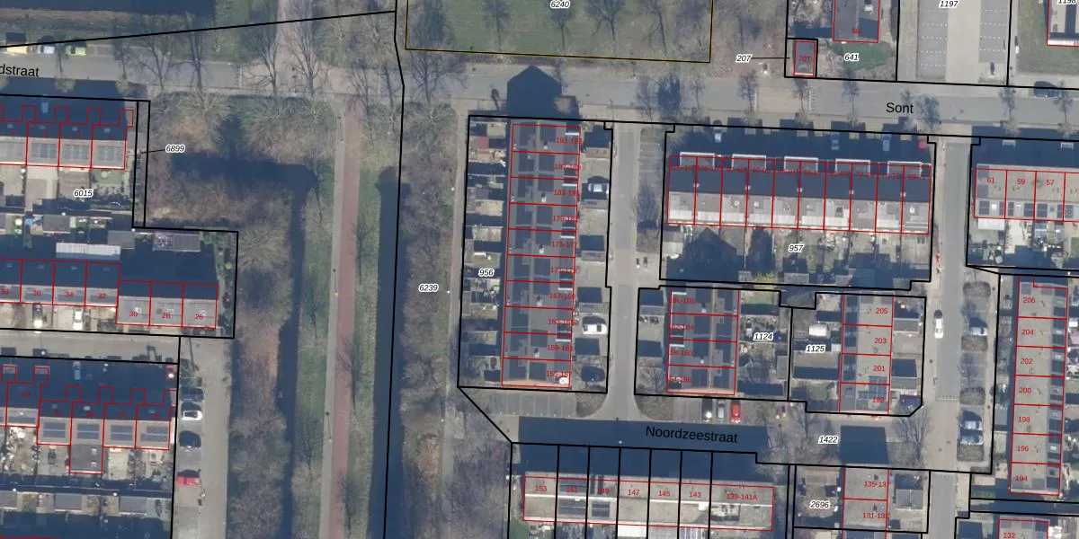 Het perceel waarop Noordzeestraat 173 staat heeft een oppervlakte van 1359 m². Dit is een zeer groot perceel. De perceeloppervlakte wordt geregistreerd door het Kadaster. Gedetailleerde informatie over de maten van dit perceel kunt u vinden in het rapport Kadastrale kaart met maatvoering van Noordzeestraat 173.