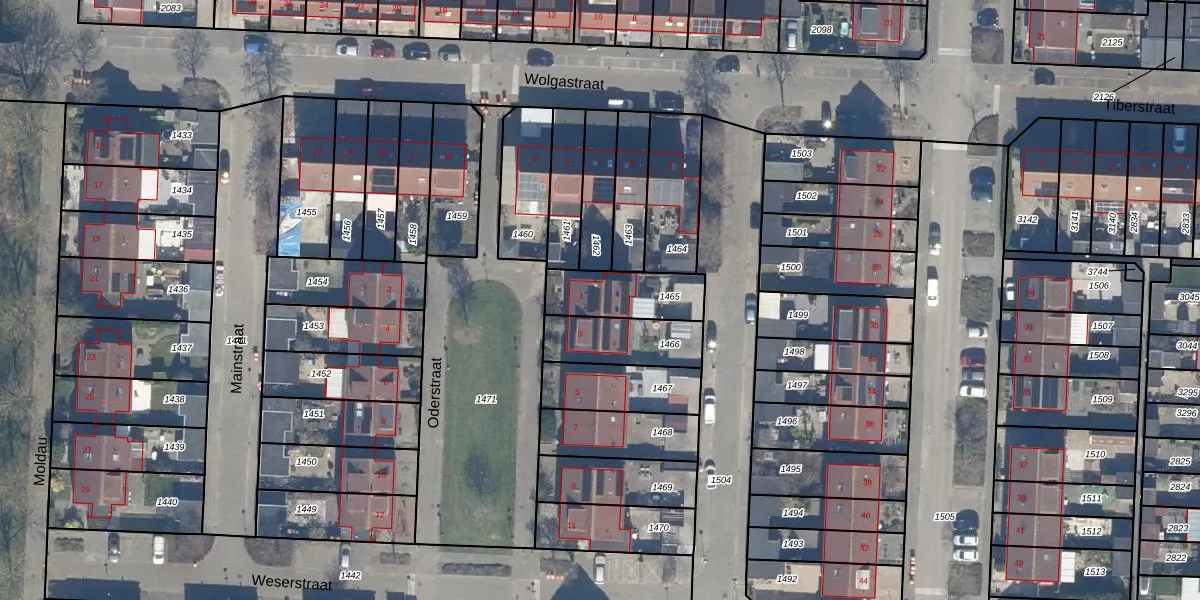 Gebruik de zoekbalk of klik op een perceel voor informatie over de adressen binnen dit perceel.