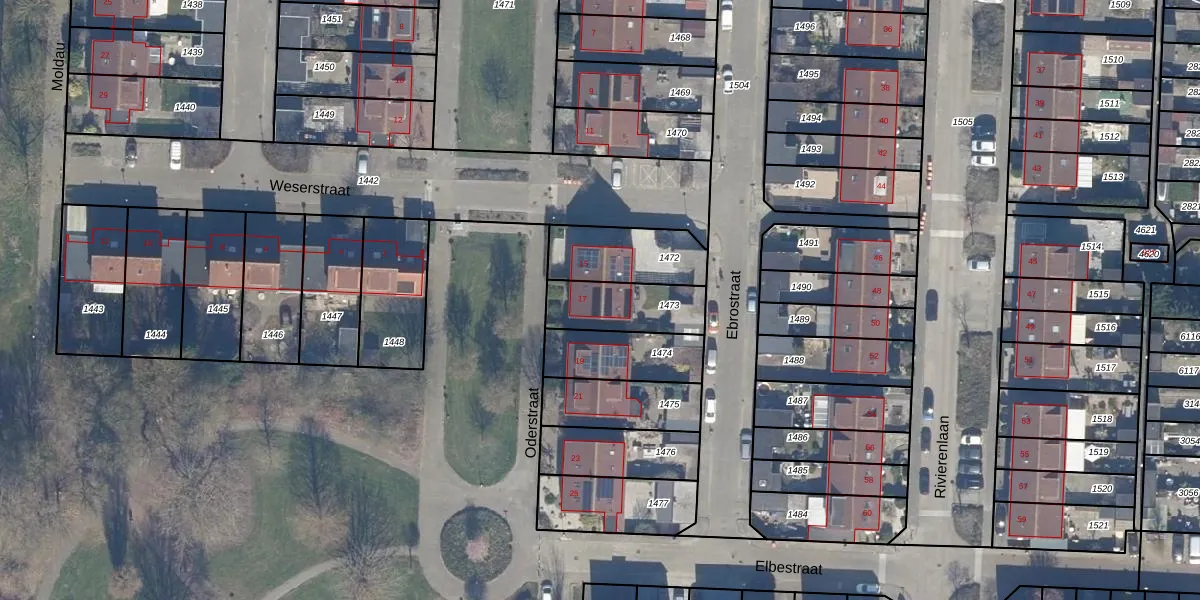 Gebruik de zoekbalk of klik op een perceel voor informatie over de adressen binnen dit perceel.
