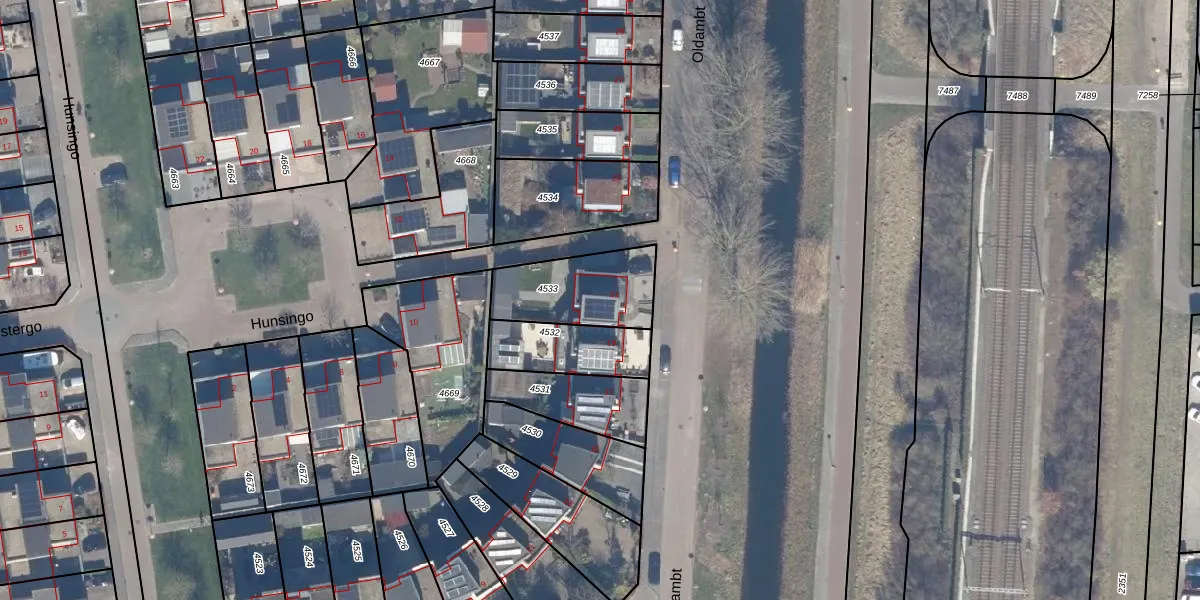 Gebruik de zoekbalk of klik op een perceel voor informatie over de adressen binnen dit perceel.