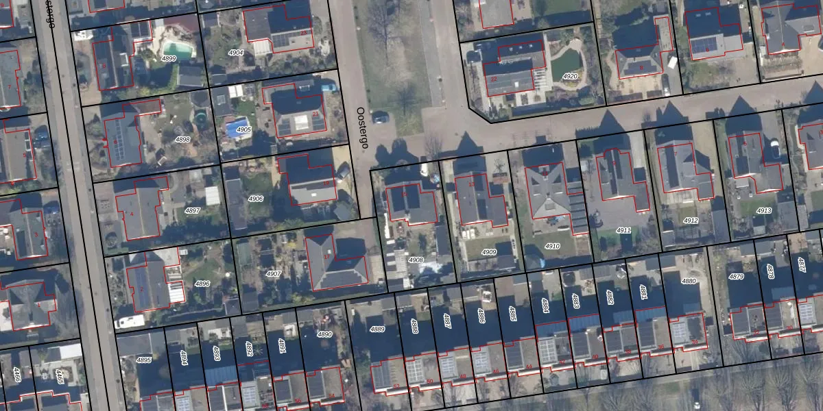 Gebruik de zoekbalk of klik op een perceel voor informatie over de adressen binnen dit perceel.