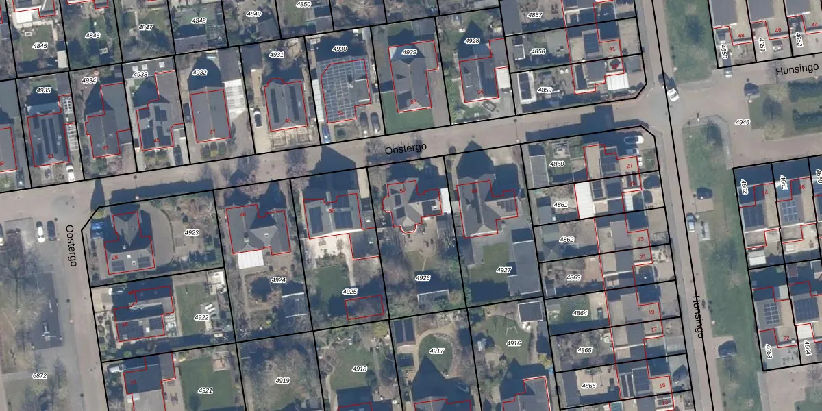 Het perceel waarop Oostergo 52 staat heeft een oppervlakte van 709 m². Dit is een groot perceel. De perceeloppervlakte wordt geregistreerd door het Kadaster. Gedetailleerde informatie over de maten van dit perceel kunt u vinden in het rapport Kadastrale kaart met maatvoering van Oostergo 52.
