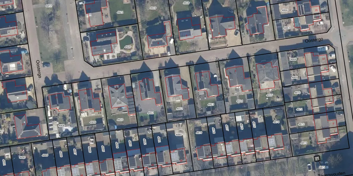 Het perceel waarop Oostergo 7 staat heeft een oppervlakte van 510 m². Dit is een groot perceel. De perceeloppervlakte wordt geregistreerd door het Kadaster. Gedetailleerde informatie over de maten van dit perceel kunt u vinden in het rapport Kadastrale kaart met maatvoering van Oostergo 7.