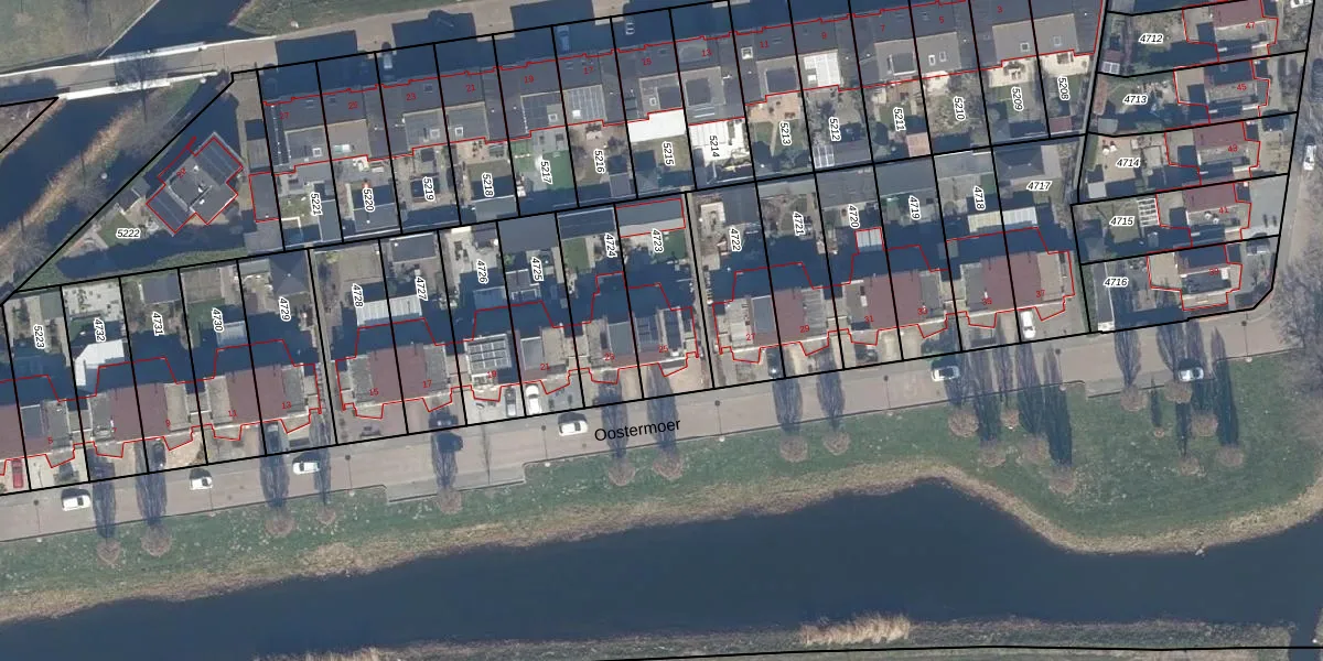 Gebruik de zoekbalk of klik op een perceel voor informatie over de adressen binnen dit perceel.