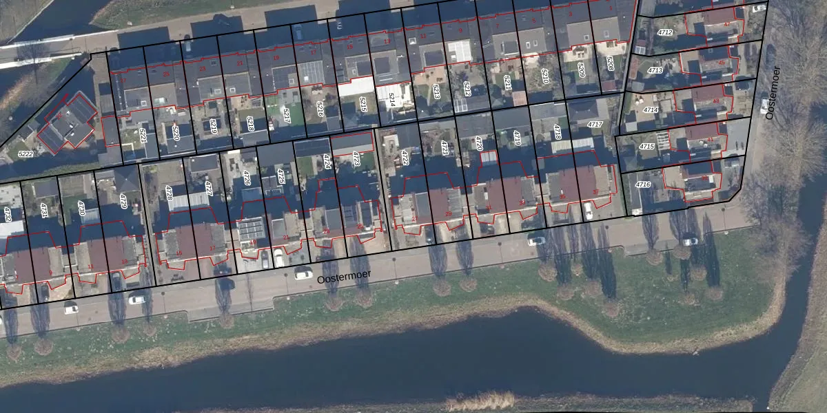 Het perceel waarop Oostermoer 27 staat heeft een oppervlakte van 325 m². Dit is een groot perceel. De perceeloppervlakte wordt geregistreerd door het Kadaster. Gedetailleerde informatie over de maten van dit perceel kunt u vinden in het rapport Kadastrale kaart met maatvoering van Oostermoer 27.