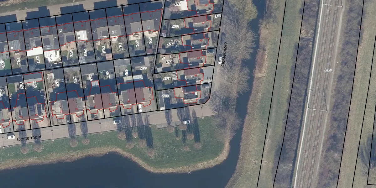 Het perceel waarop Oostermoer 39 staat heeft een oppervlakte van 303 m². Dit is een groot perceel. De perceeloppervlakte wordt geregistreerd door het Kadaster. Gedetailleerde informatie over de maten van dit perceel kunt u vinden in het rapport Kadastrale kaart met maatvoering van Oostermoer 39.