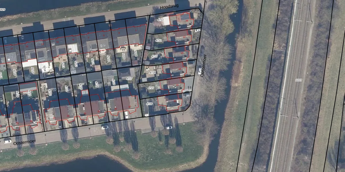 Het perceel waarop Oostermoer 41 staat heeft een oppervlakte van 289 m². Dit is een middelgroot perceel. De perceeloppervlakte wordt geregistreerd door het Kadaster. Gedetailleerde informatie over de maten van dit perceel kunt u vinden in het rapport Kadastrale kaart met maatvoering van Oostermoer 41.