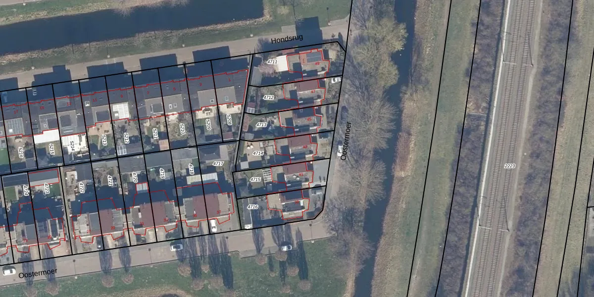 Het perceel waarop Oostermoer 43 staat heeft een oppervlakte van 298 m². Dit is een middelgroot perceel. De perceeloppervlakte wordt geregistreerd door het Kadaster. Gedetailleerde informatie over de maten van dit perceel kunt u vinden in het rapport Kadastrale kaart met maatvoering van Oostermoer 43.