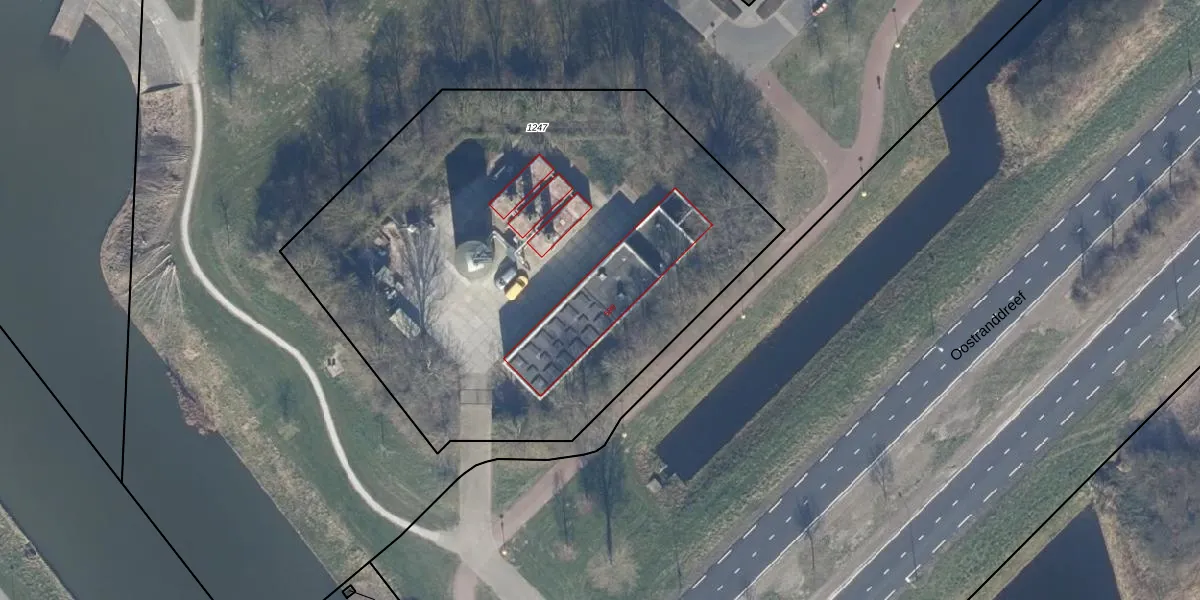 Oostranddreef 599 is gelegen op kadastraal perceel LLS00P1247. Deze kadastrale aanduiding is uniek en wordt gebruikt door het Kadaster om eigendomsrechten en andere zakelijke rechten vast te leggen. Het perceel maakt onderdeel uit van de kadastrale gemeente Lelystad.