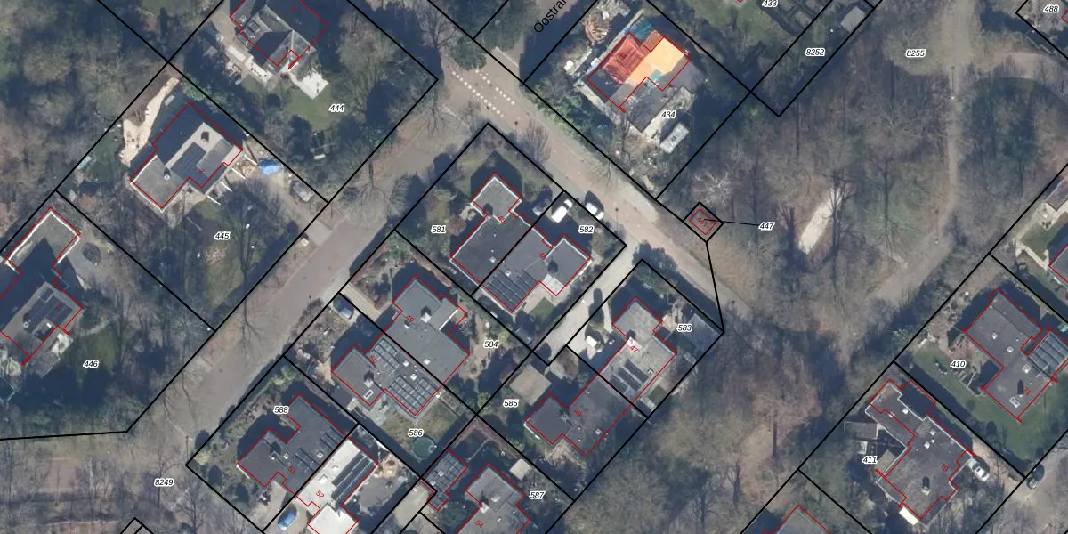 Het perceel waarop Oostrandpark 46 staat heeft een oppervlakte van 411 m². Dit is een groot perceel. De perceeloppervlakte wordt geregistreerd door het Kadaster. Gedetailleerde informatie over de maten van dit perceel kunt u vinden in het rapport Kadastrale kaart met maatvoering van Oostrandpark 46.
