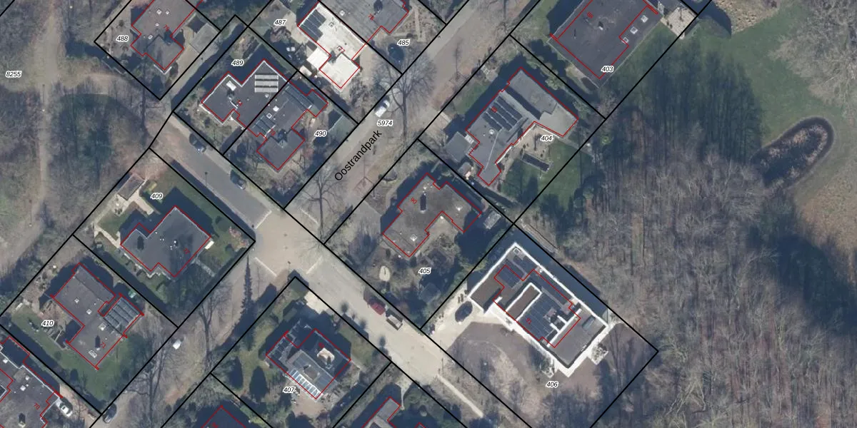 Het perceel waarop Oostrandpark 90 staat heeft een oppervlakte van 990 m². Dit is een groot perceel. De perceeloppervlakte wordt geregistreerd door het Kadaster. Gedetailleerde informatie over de maten van dit perceel kunt u vinden in het rapport Kadastrale kaart met maatvoering van Oostrandpark 90.