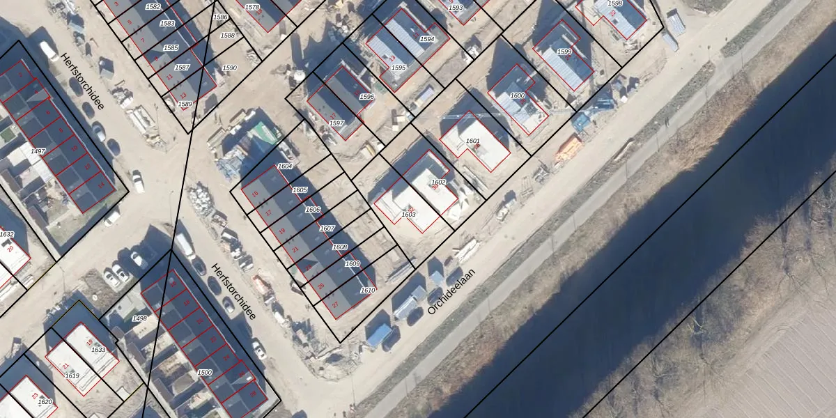 Orchideelaan 32 is gelegen op kadastraal perceel LLS00A1603. Deze kadastrale aanduiding is uniek en wordt gebruikt door het Kadaster om eigendomsrechten en andere zakelijke rechten vast te leggen. Het perceel maakt onderdeel uit van de kadastrale gemeente Lelystad.